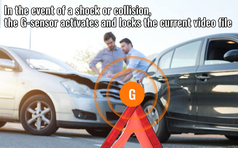 In the event of a shock or collision, the G-sensor activates and locks the current video file