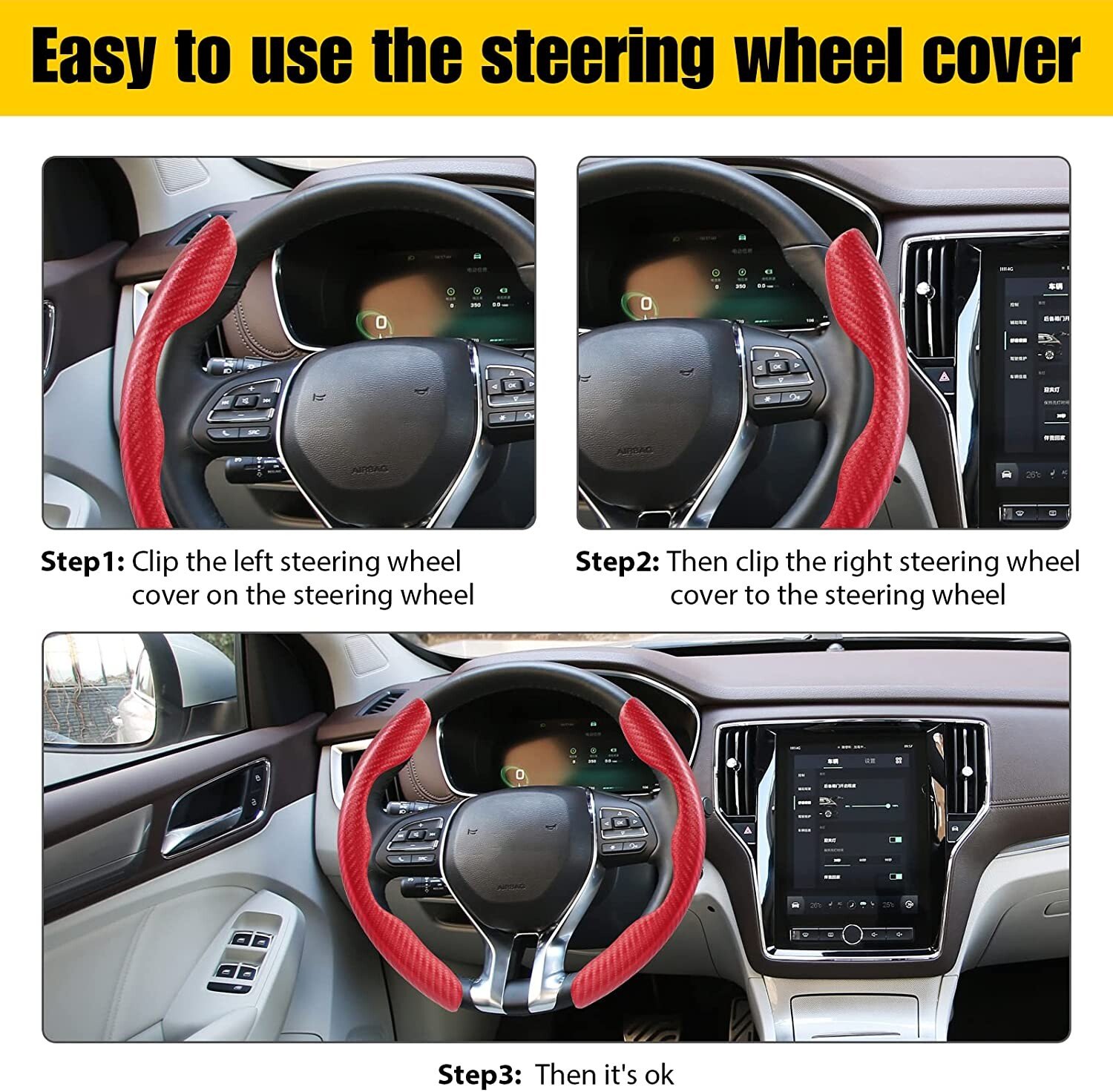 【Easy To Install】 slips right on steering wheel and instantly improves the appearance of old or dirty steering wheels.