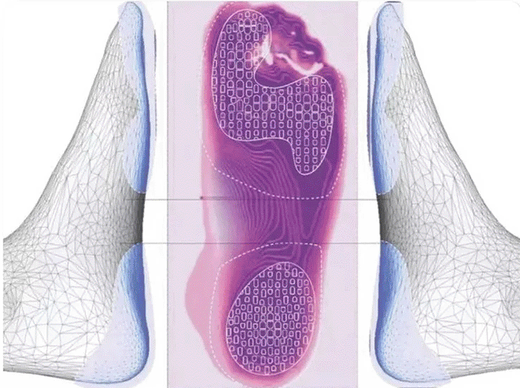 According to the morphological characteristics of human feet and the forcedistribution of barefoot standing feet.Scientific calculation of the shapeand configuration of the sole particles.Precisely correct dispersion.The pressure state of the sole whenstanding barefoot Simultaneously supports the arch of the foot.