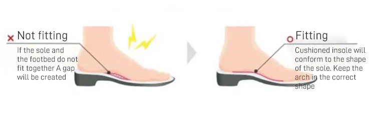 Cushion leave no gaps between soles Create the correct arch structure