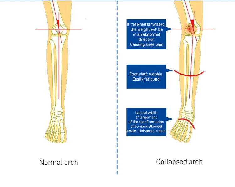 The arch collapse will causemore pressure on the leg.