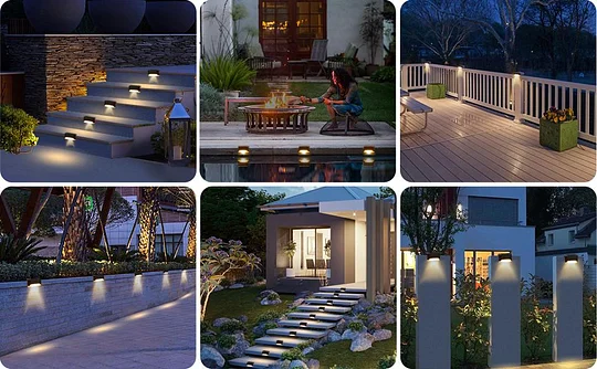 Outdoor solar deck lights for daily lighting and decoration. Creates a nice ambiance for your backyard, patio, stair, deck, fence, garden, porch, pathway, etc.