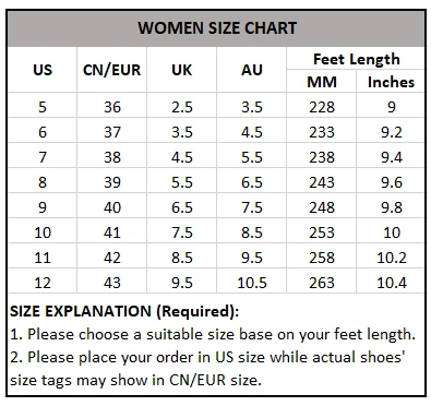 Please choose the size based on your foot length (inch or cm) to avoid mistakes.